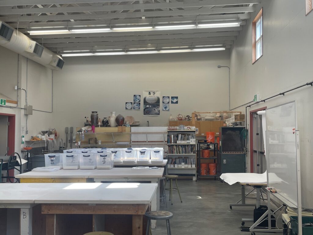 so this is the start of FIN210. A course I had originally entered with fear and trepidation – but reassurances from Linda and other faculty have put some of my fears to rest. First class was some plein aire work. I have a real struggle converting the 3D images that I observe into a 2D representation. The first studies are from the pottery studio. It was sad seeing the studio lying idle when there is normally so much activity going on.