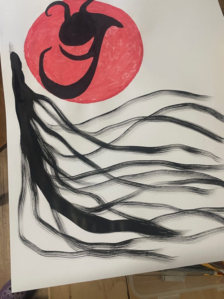 Unit 2 – reflection. This project was quite a learning process. Taking a research project and seeing it through to my own artwork. I am happy with my choice of artist, as Beardsley’s work was quite nostalgic for me, and i like his edgy style. As I mentioned in the presentation I first saw his work 50 years ago, and for a while had a couple of art books of his work, which disappeared many years ago. I enjoyed the presentation. Over the years I have spoken at many venues on a whole range of topics and I try hard to engage my audience. I feel a number of my classmates could benefit with some help and suggestions about presenting – particularly if using media such as PowerPoint. It’s really important not to crowd the slides or notes with massive amounts of information – just use the images as a prompt, and also reading verbatim isn’t great – its not possible to engage an audience when reading from a script or a phone. Creating the piece presented several challenges. I knew i didn’t have the skills necessary to create drawings with Beardsley’s finesse so i looked for images emblems and motifs which might at least capture some of his essence. The use of materials was also a challenge. The red circle was going to be a core element and my first shot used chalk pastel as I felt I could get an even coloration using that media. Pastel however is so sensitive to smudging and it became clear I was going to need something different/. Had a shot with red food color, but found it too garish, so settled on watercolor. I hadn’t realized you could get watercolor paints in tubes – which are a lot handier than tablets – so that really helped for this and for future work. The mask, hair and raven emblems were reasonably straightforward, and I feel they had a connection to the artist even if i didn’t see the raven in any of his drawings, it had that gothic type of vibe. but the big move was trying to get his defining sweeping lines with a brush and ink. I did a couple of practice runs which were OK, but there’s no going back once you start applying ink to the work which you have already spent a lot of time on. I was not entirely happy with all the marks but felt they at least had some sense of the artist. I enjoyed the positive comments during critique, but sometimes in this class full of such talented people i wonder if I’m the village idiot that people are just humoring….I do know however that my confidence has grown during the class and there are a few marks and processes which I am beginning to feel are my own style which I’m looking forward to carrying forward.